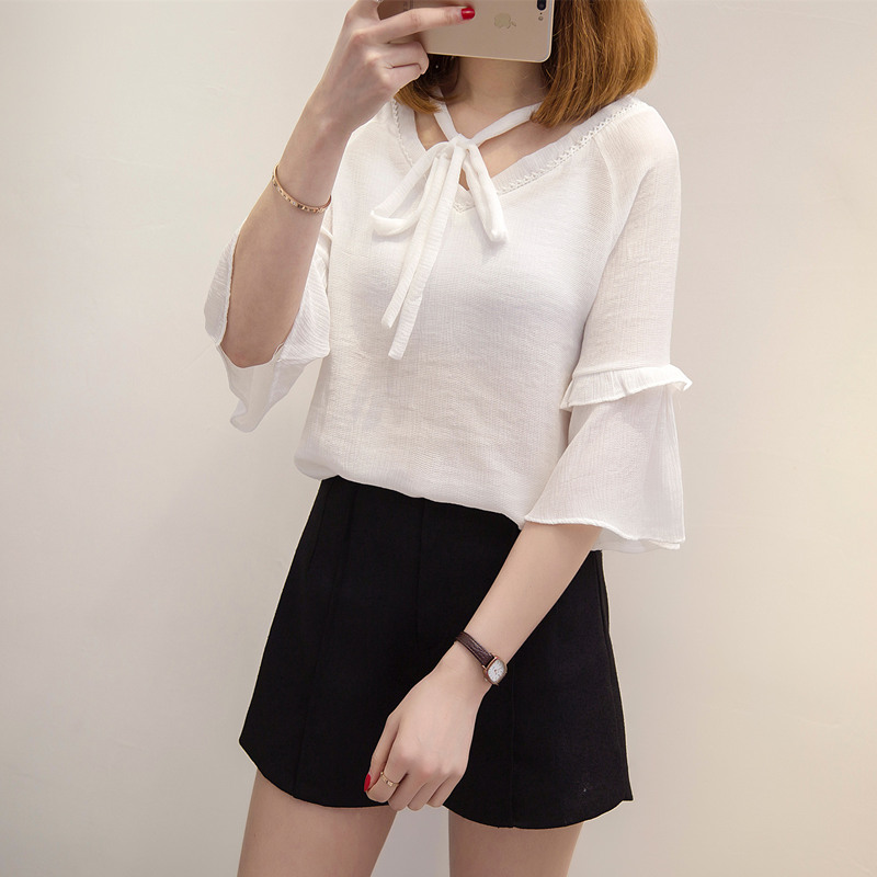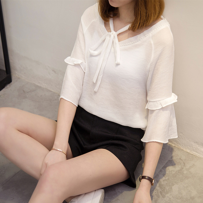 短袖上衣女夏新款荷葉袖白色t恤女夏薄款衣服寬松韓版百搭潮