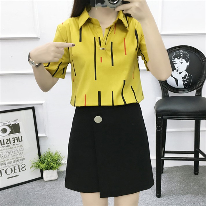 / 白色襯衫女2017夏裝休閑寬松百搭大碼上衣中長款職業短袖雪紡襯衣