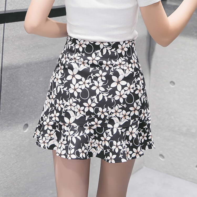 夏季韓版高腰小碎花半身裙女荷葉邊魚尾裙褲裙A字包臀短裙新