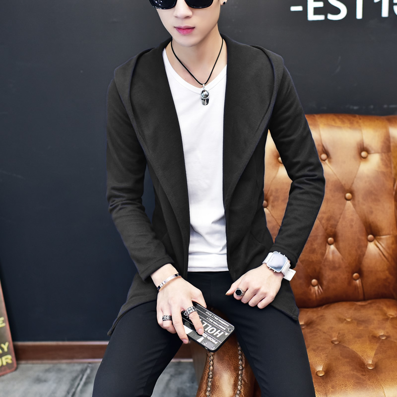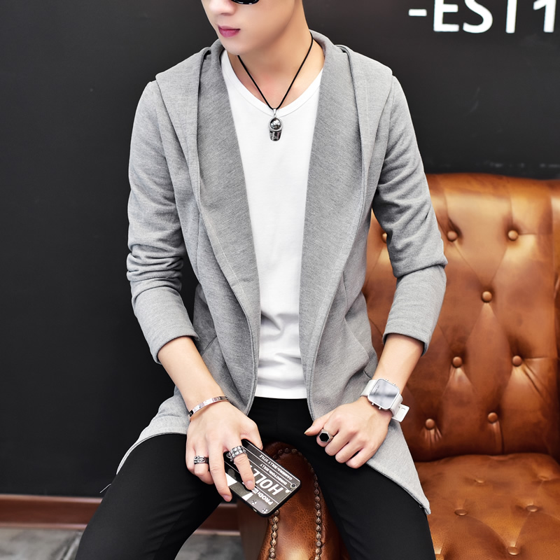 2017春秋新款針織大衣韓版男士大碼外套帥氣中長款風衣