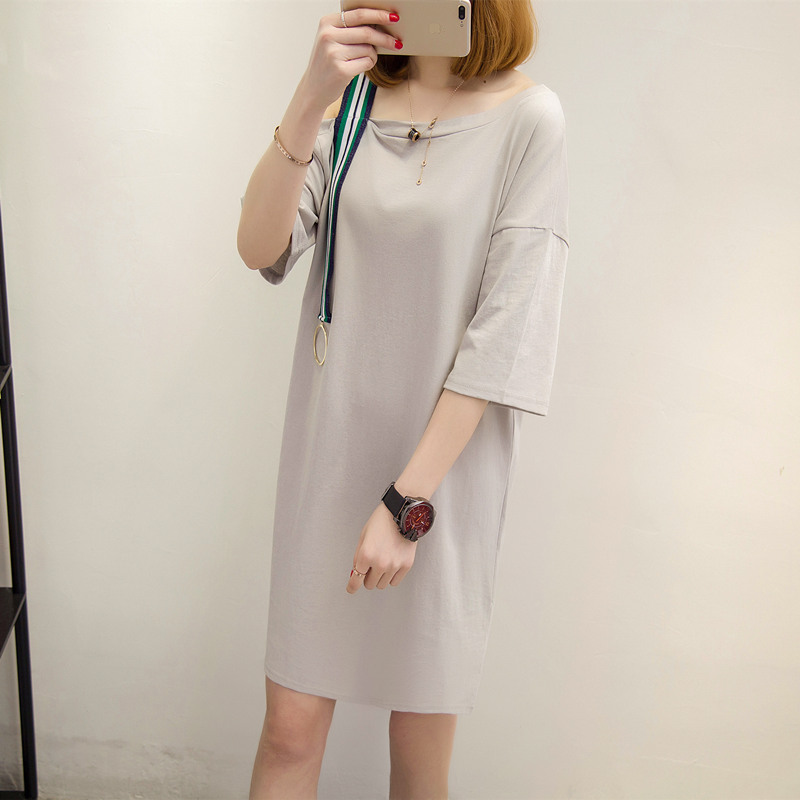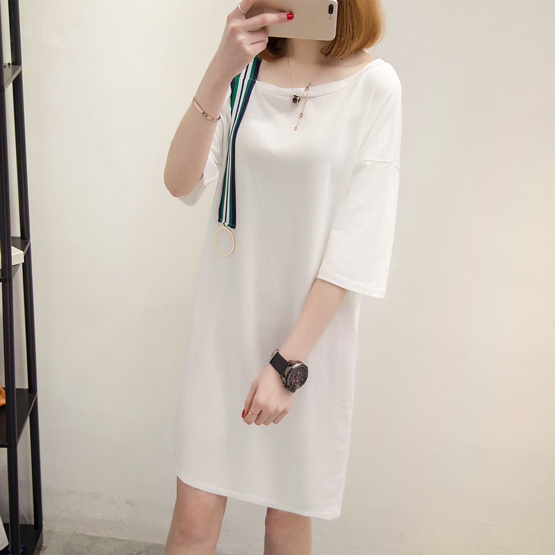 女裝夏裝新款潮中長款上衣白色t恤女短袖露肩寬松打底衫韓版