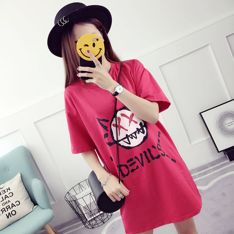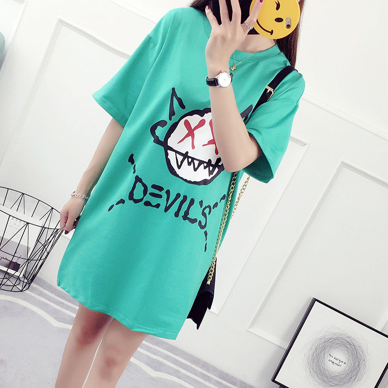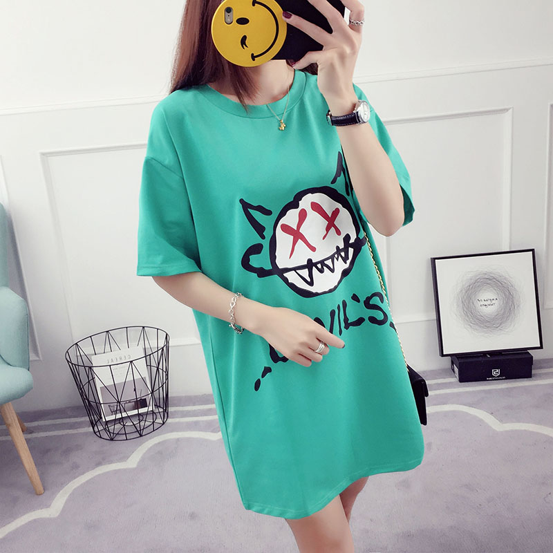 夏裝新款韓版百搭學生寬松上衣中長款打底衫短袖t恤女半截袖