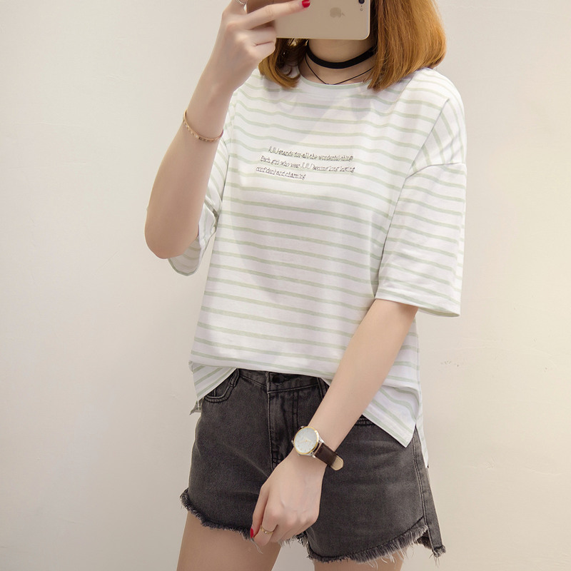條紋t恤女韓版學生小清新上衣女夏bf風體恤衫短袖夏裝新款女