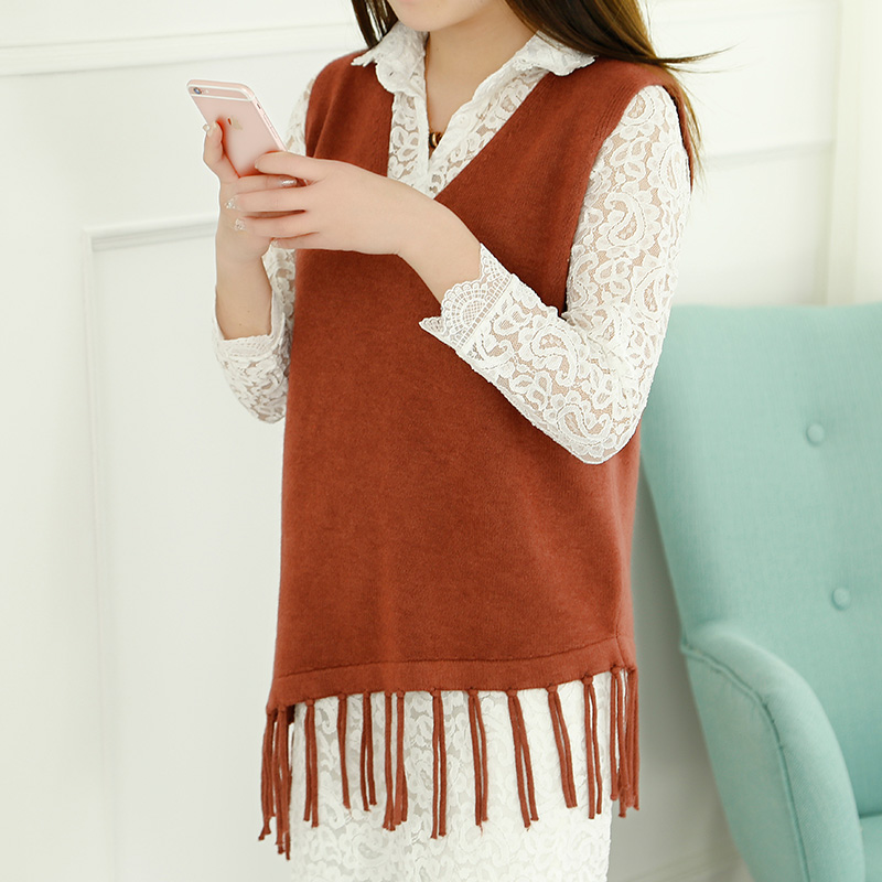 韓版兩件套套裝裙春裝新款女流蘇針織衫蕾絲連衣裙春秋女裝潮