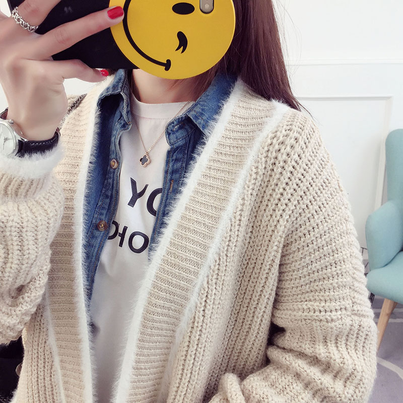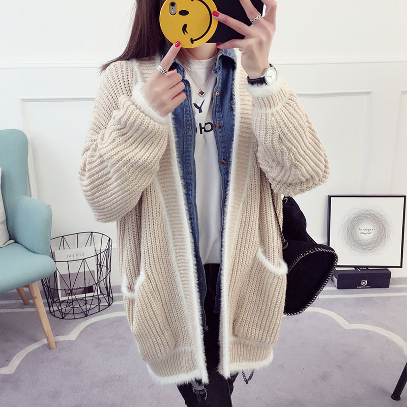 針織外套開衫毛衣女春秋中長款厚寬松韓版春秋冬學生百搭上衣