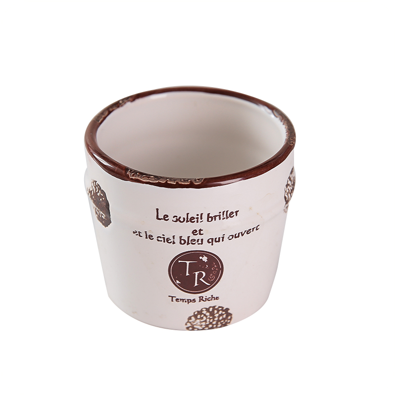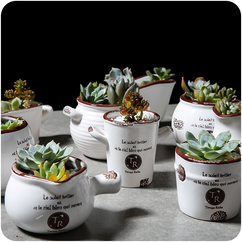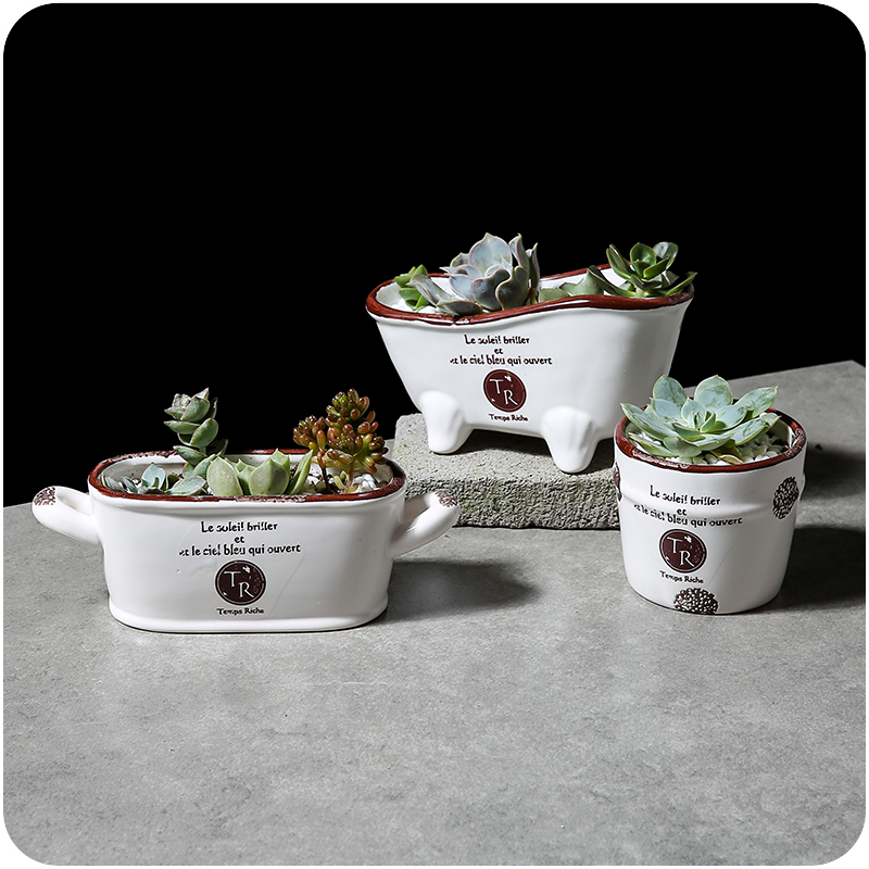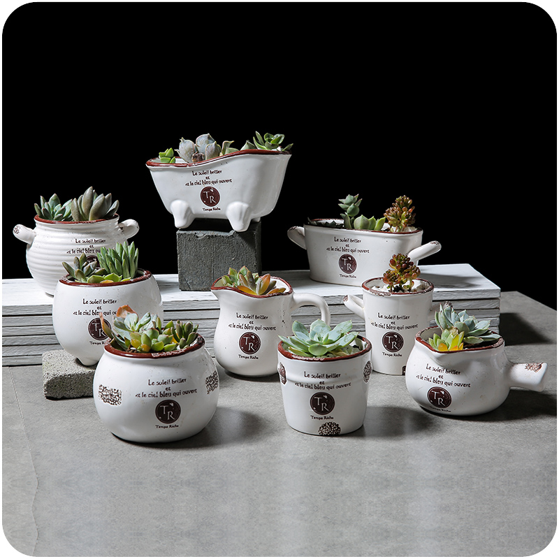 多肉花盆個性創意仿古做舊白色印花陶瓷工藝肉植物花器精致時尚盆