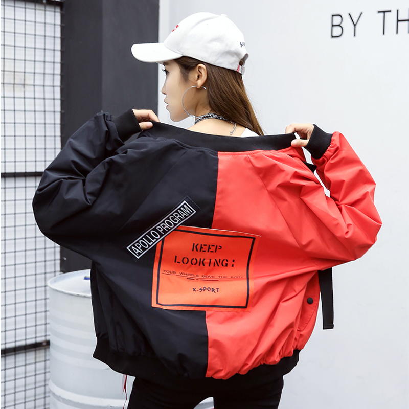 秋季夾克外套女春秋韓版學生貼布撞色bf原宿寬松棒球服織帶原宿風