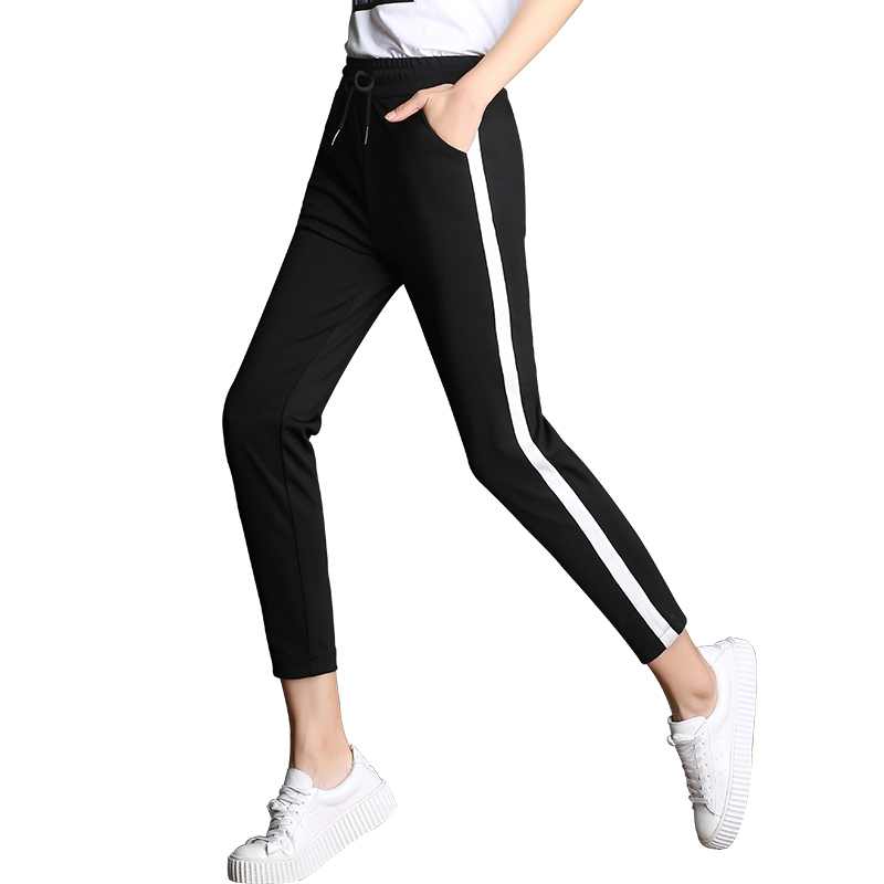 九分褲女小腳褲春夏新款學生百搭褲子韓版條紋哈倫運動休閑褲