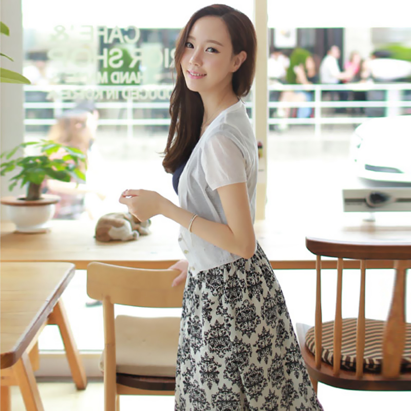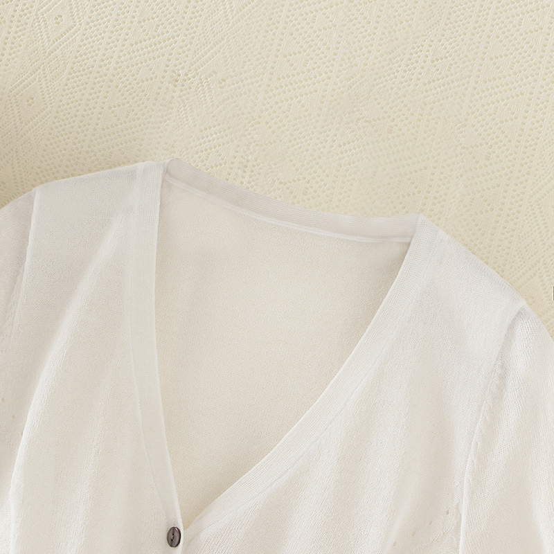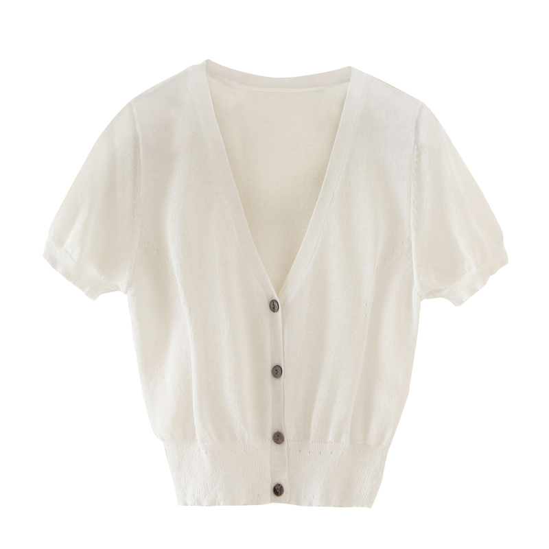 短袖開衫女夏薄短款外搭v領純色披肩外套針織衫女開衫薄款空調衫