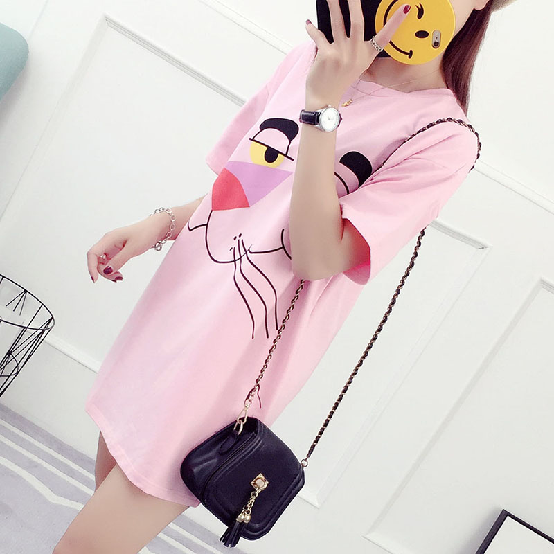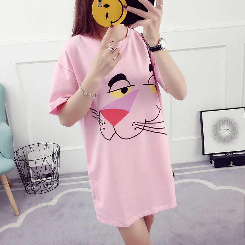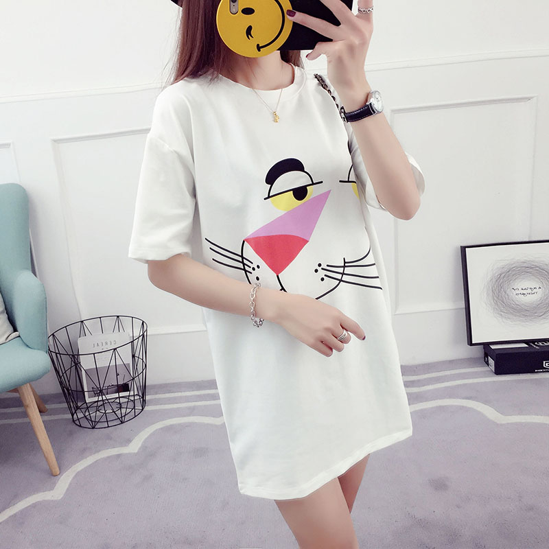 韓版百搭學生中長款短袖t恤女夏季寬松打底衫卡通學院風夏裝