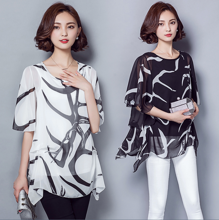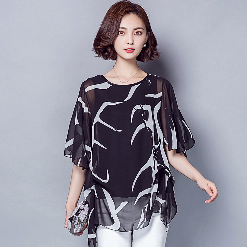 夏天大碼短袖碎花雪紡衫女胖mm時尚寬松遮肚子加肥加大上衣小衫潮