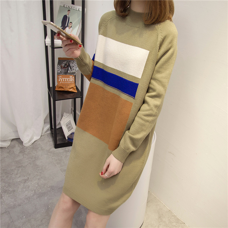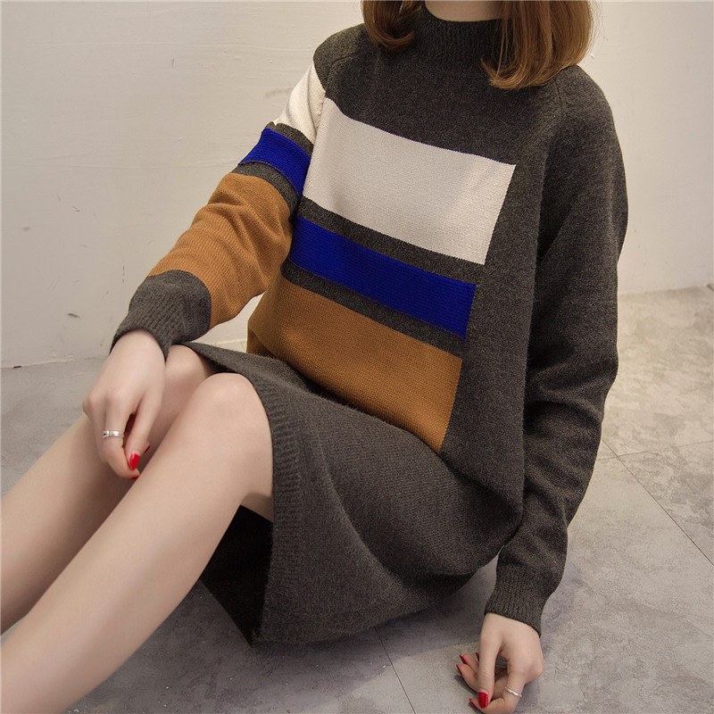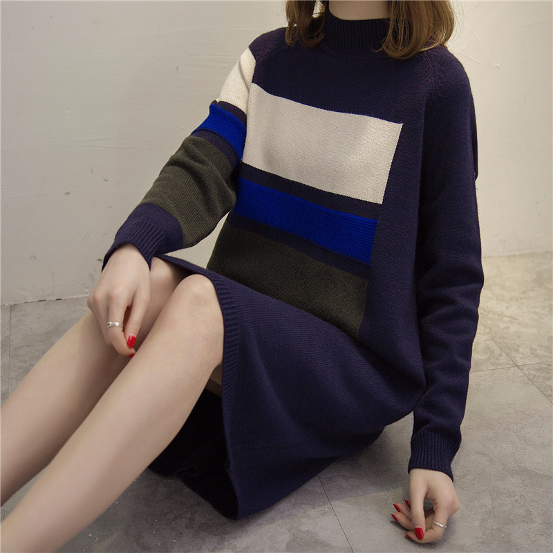 女裝冬裝新款潮套頭毛衣裙女秋冬中長款針織衫長款打底毛衣厚