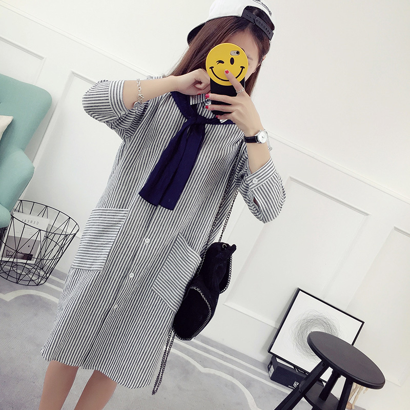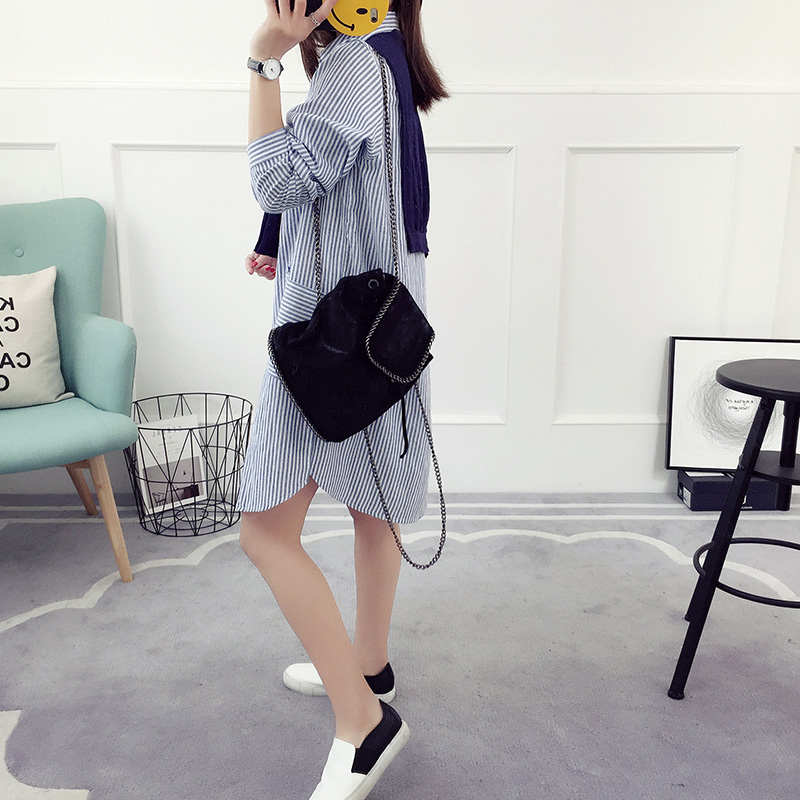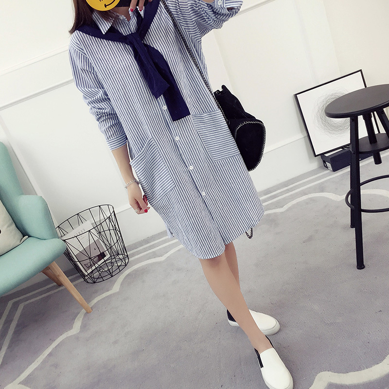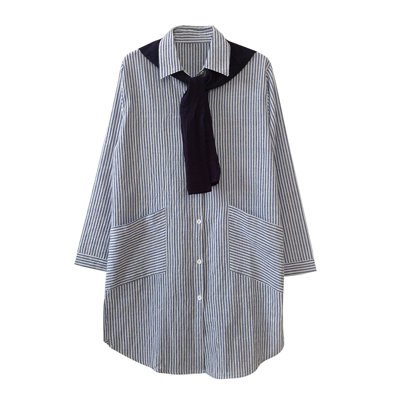 豎條紋襯衫女長袖春裝新款韓版假兩件上衣學生學院風韓范襯衣