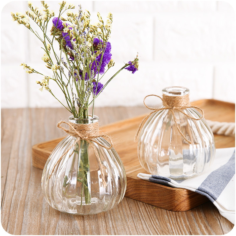 簡歐式花瓶創意小口南瓜瓶干鮮花裝飾擺設玻璃透明插花瓶客廳辦公