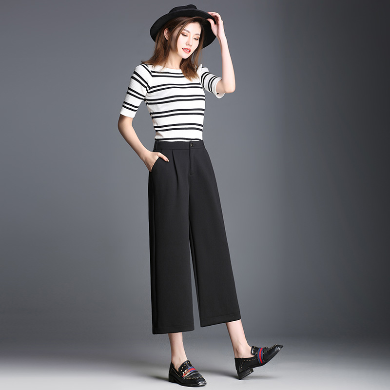 闊腿褲女九分褲春款休閑褲韓版寬松寬腳褲夏季女褲新款高腰西裝褲