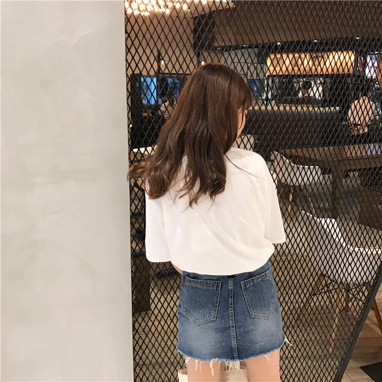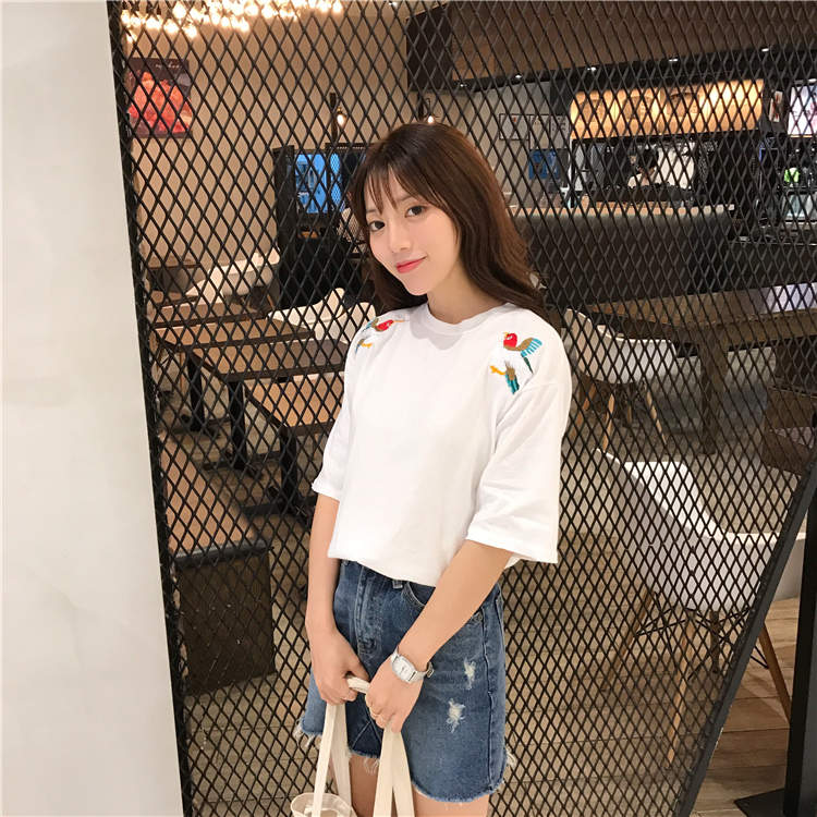 夏季新款韓版寬松圓領飄帶字母刺繡粉色t恤女短袖學生百搭上衣潮
