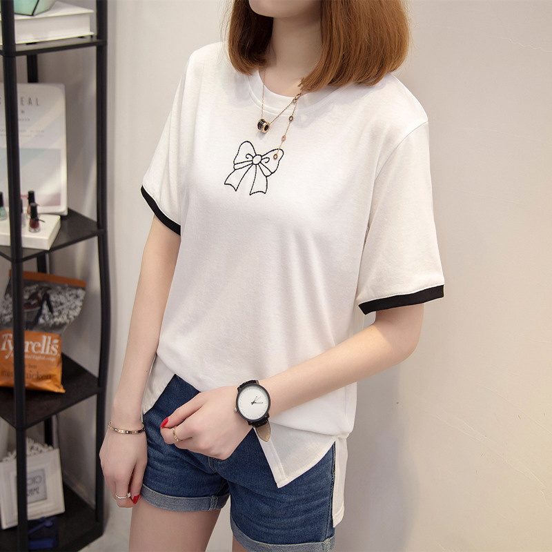 短袖t恤女新款韓版寬松百搭學生白色t恤純色上衣女夏體恤衫潮