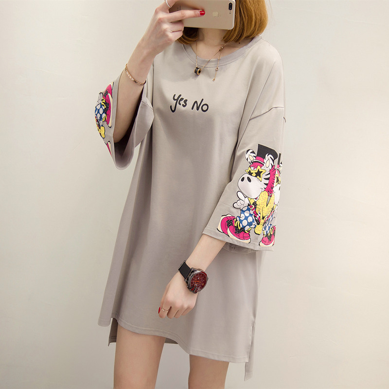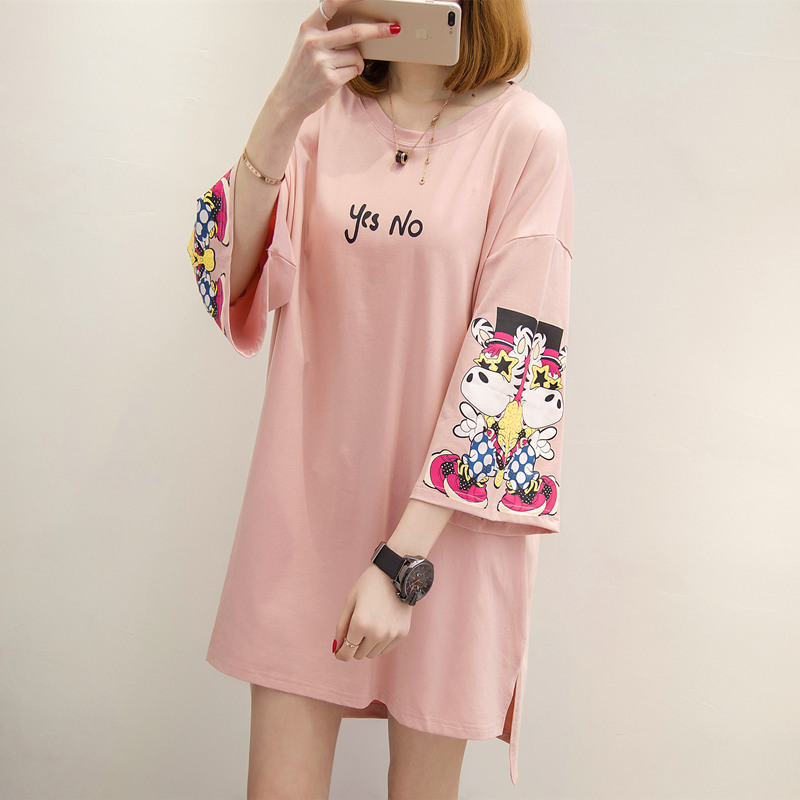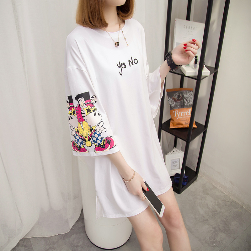 女裝夏裝新款潮白色t恤女中長袖個性寬松上衣體恤女打底短袖