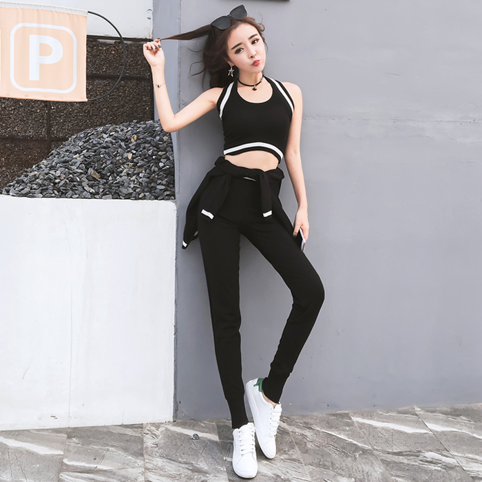 秋裝新款套裝韓版時尚針織長袖外套+運動背心+小腳長褲三件套女裝