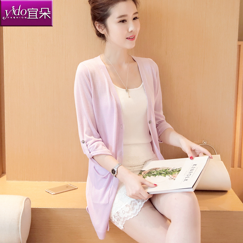 中長款針織衫女開衫薄外搭春季中袖針織空調衫女開衫防曬衫薄