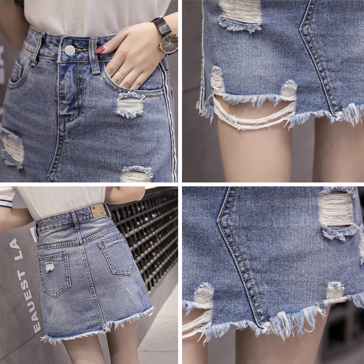 破洞牛仔裙半身裙女韓版高腰A字裙包臀短裙做舊流蘇毛邊褲裙夏季