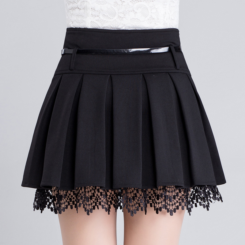 秋冬新款短裙半身裙女蕾絲百褶蓬蓬裙高腰A字裙子打底裙