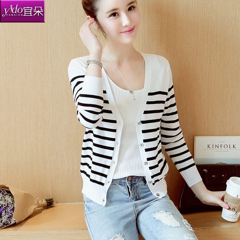 條紋針織衫女開衫春季薄款長袖針織開衫外套女修身外搭空調衫