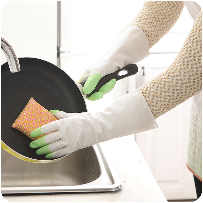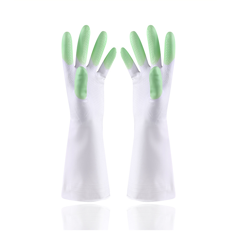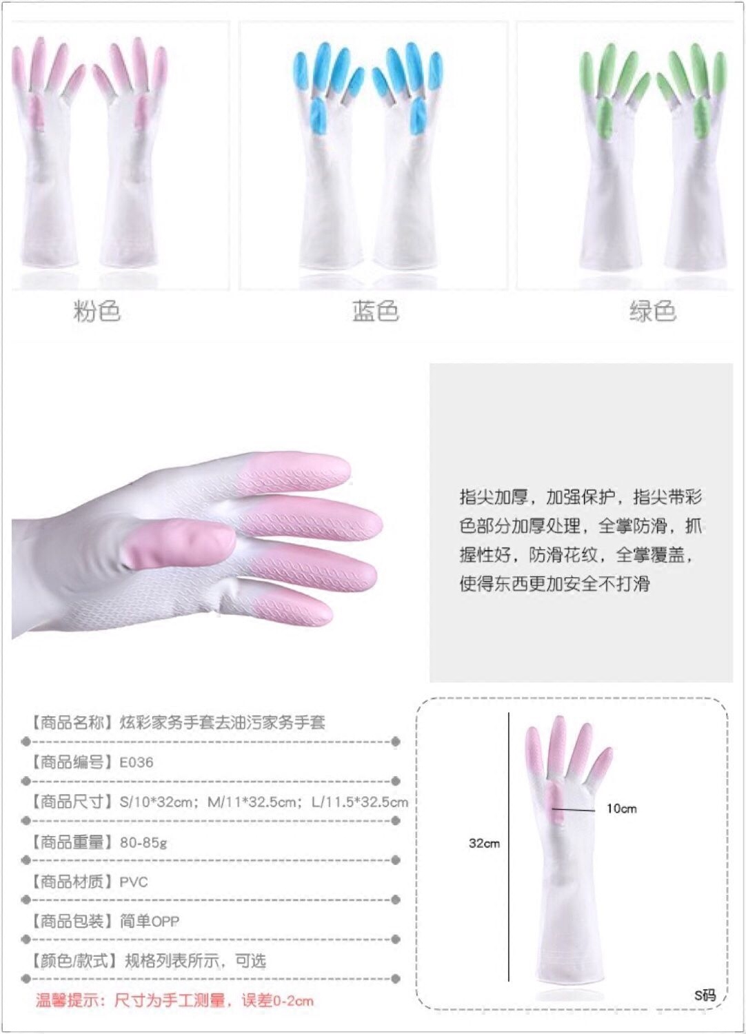 螺旋紋防滑防水塑乳膠手套耐用薄款防油污洗碗拼色護膚清潔長手套