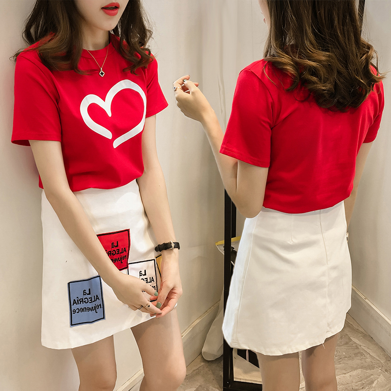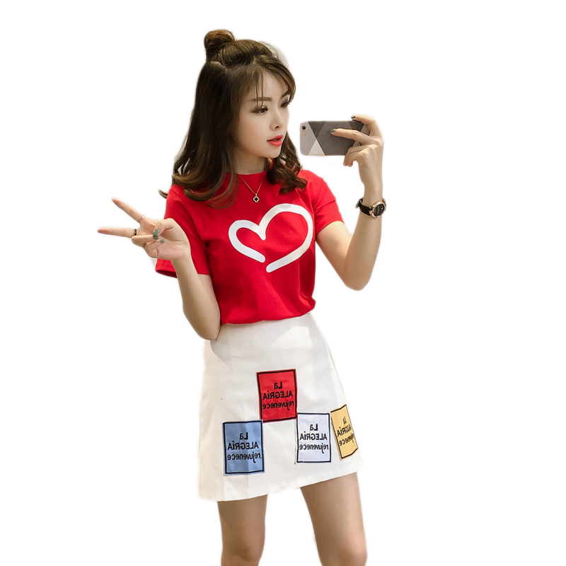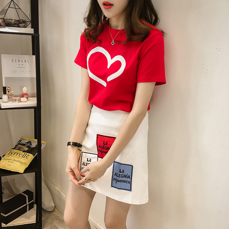 夏季新款氣質連衣裙女寬松圓領短袖上衣潮+半身短裙兩件套裝