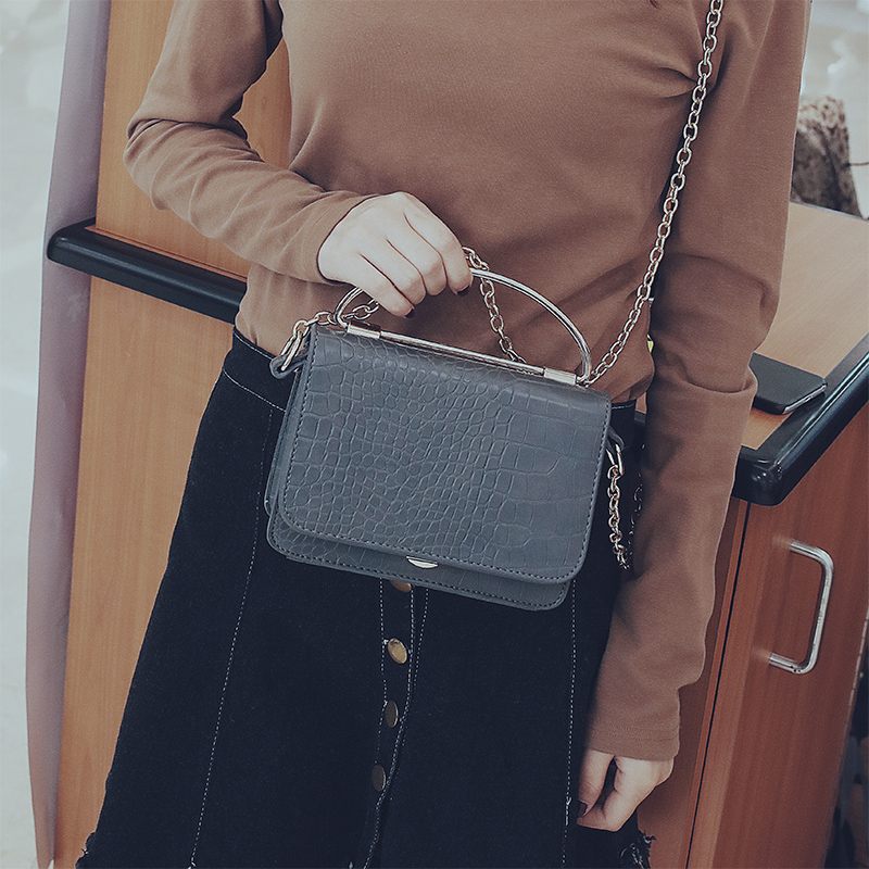 鏈條包包女新款鱷魚紋手提迷你小方包韓版簡約百搭單肩斜挎包