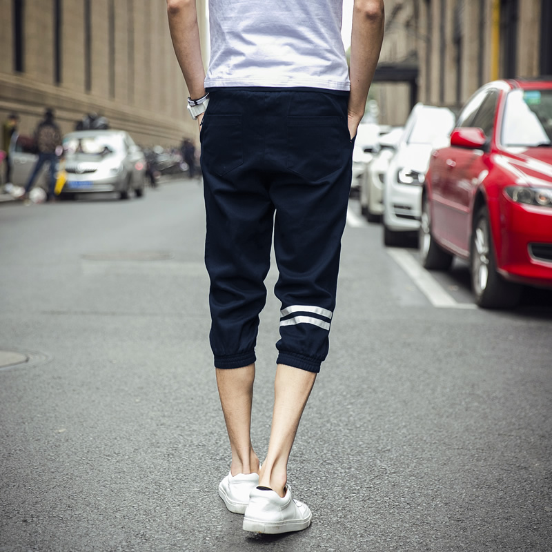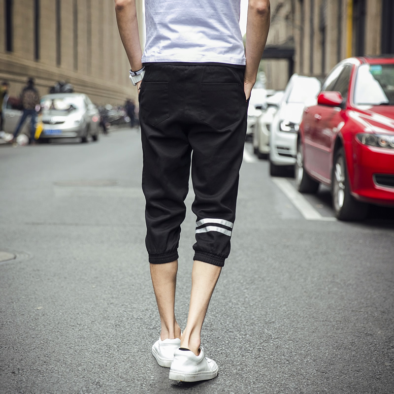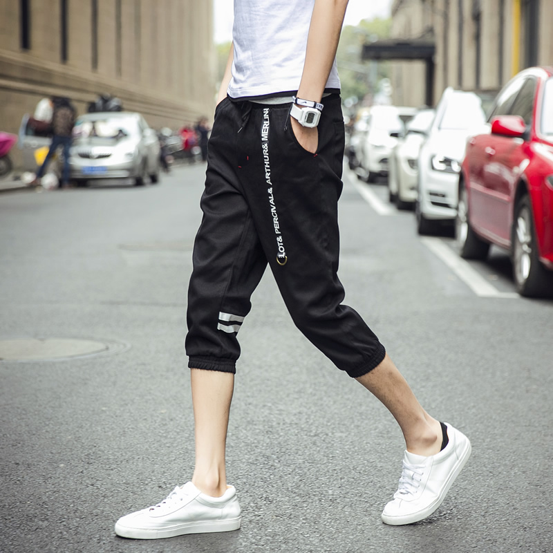 2017夏季新款潮流韓版時尚大碼印男士花束腳褲運動褲七分褲男生