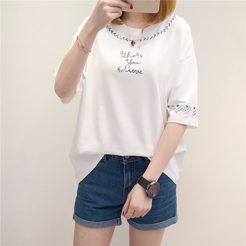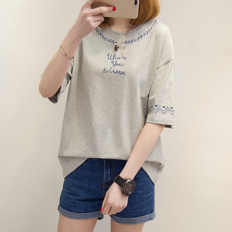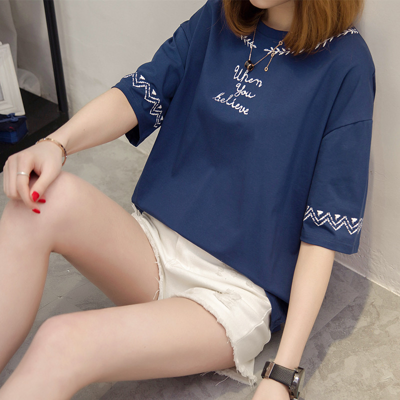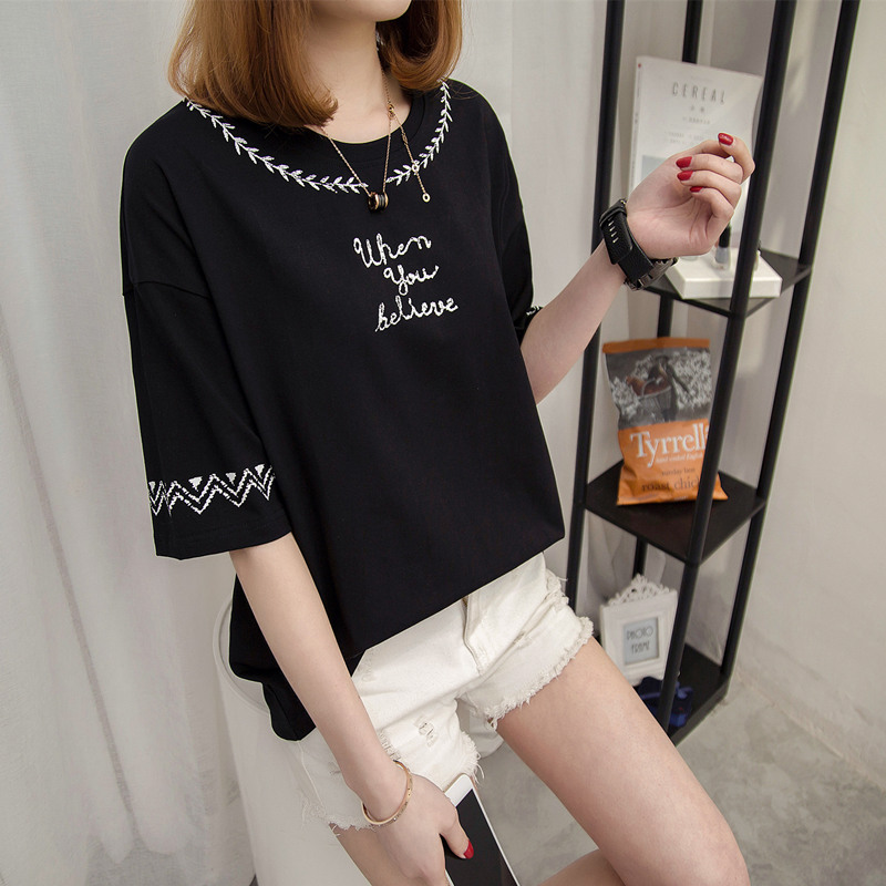 短袖上衣女夏新款薄t恤女中長袖寬松韓版打底小衫百搭衣服女