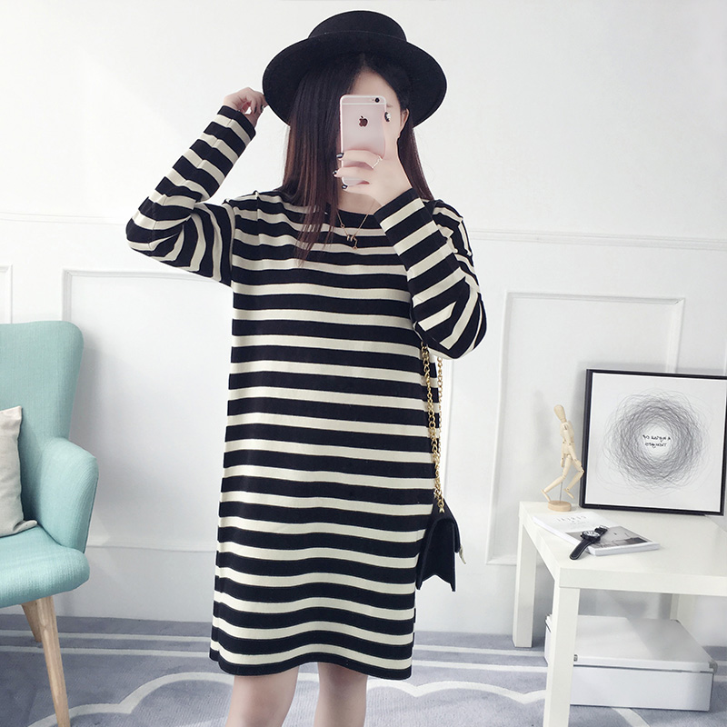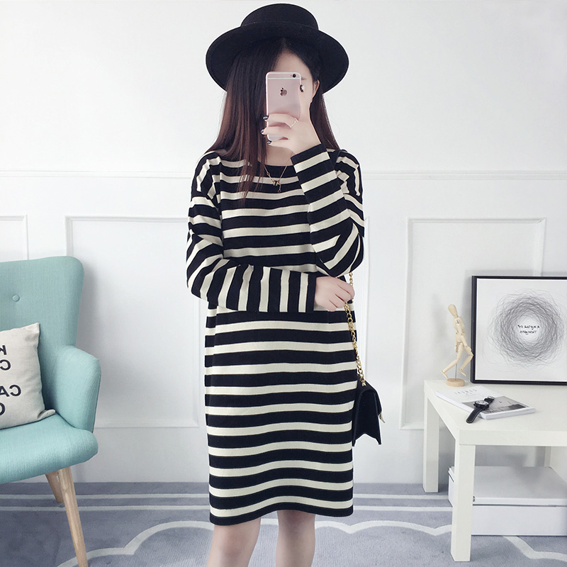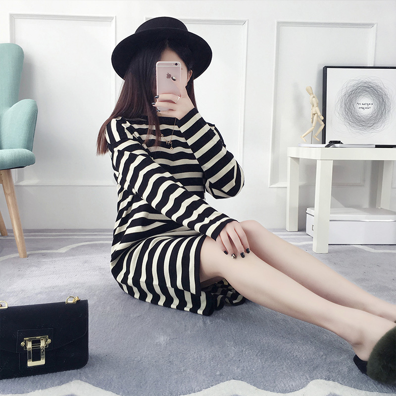 套頭毛衣女秋冬裝韓版寬松中長款條紋針織衫長袖打底衫新款潮