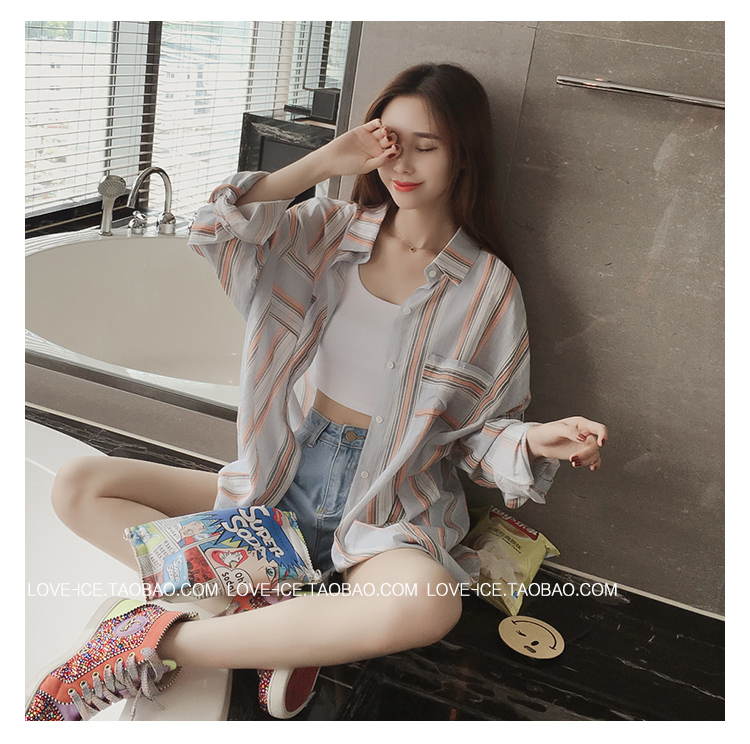 防曬衣女空調衫夏季新款女裝2017韓范寬松長袖中長款沙灘防曬襯衫