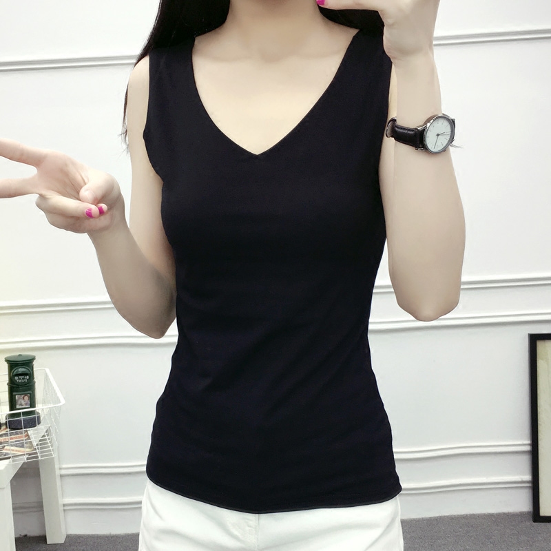 背心女吊帶夏裝新款百搭修身顯瘦工字棉純色v領打底衫上衣