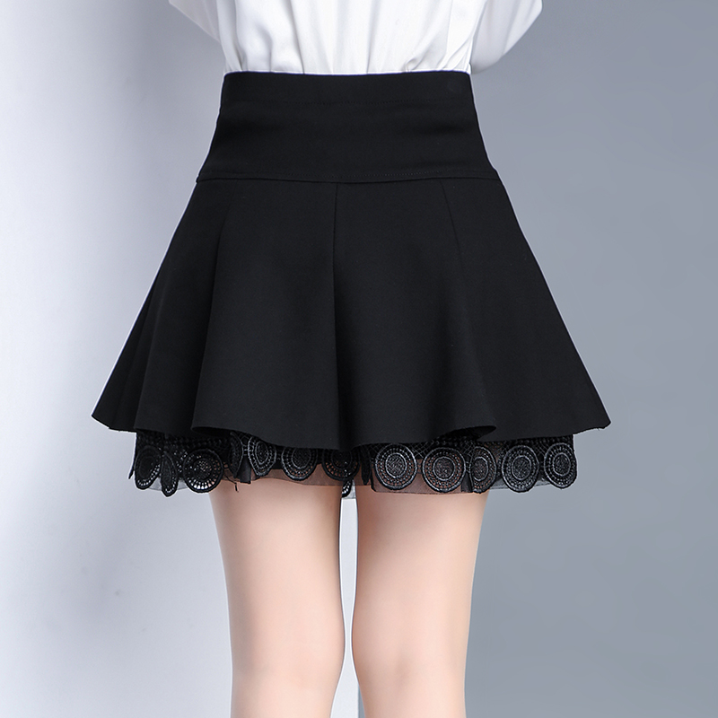 春秋新款短裙蓬蓬裙高腰蛋糕裙松緊腰修身顯瘦黑色百褶裙子