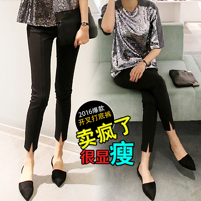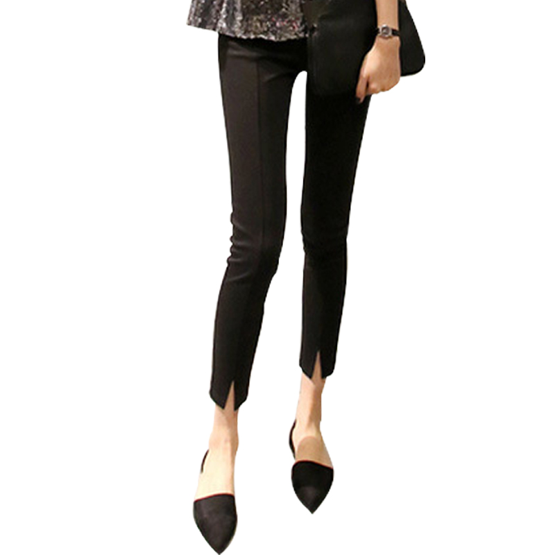 春秋季韓版黑色鉛筆褲顯瘦小腳褲開叉高腰外穿打底褲女九分褲