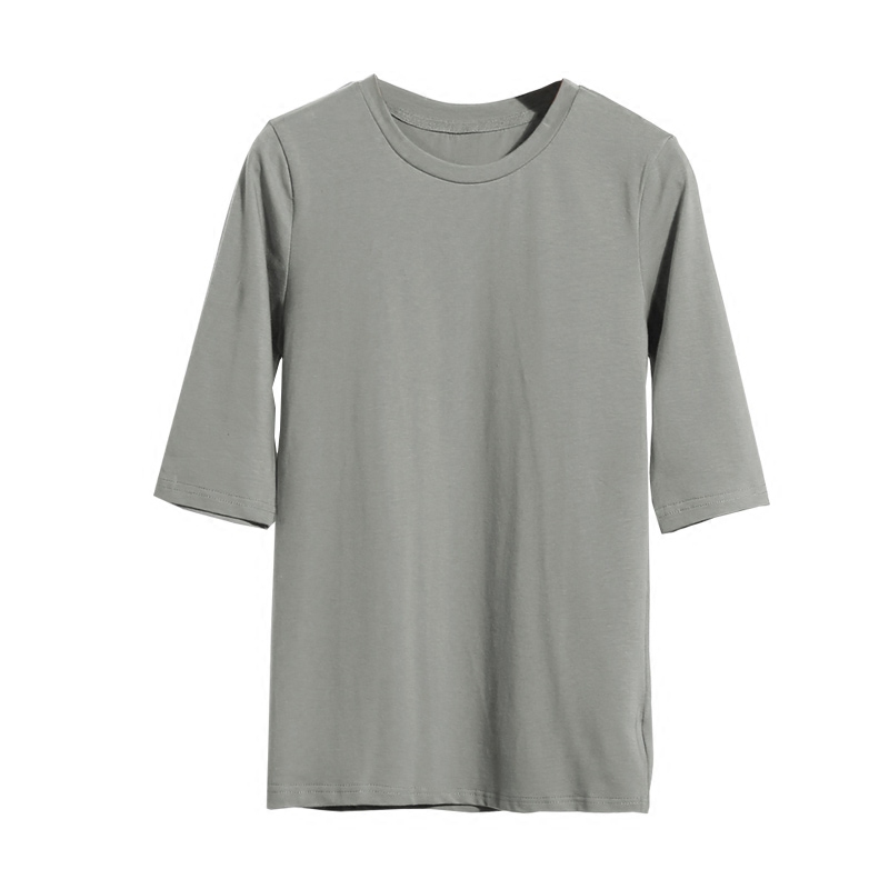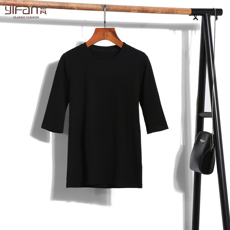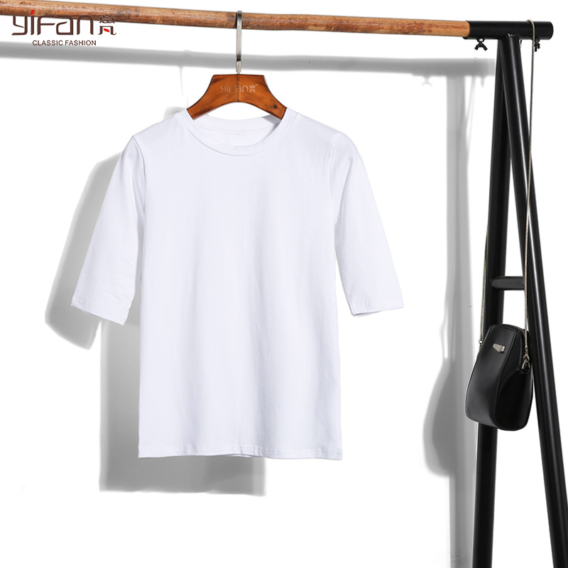 夏季新款純色圓領短袖白色T恤女中袖簡約修身純棉女士T恤衫