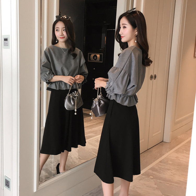春夏新款女裝韓版小香風兩件套裝中長款收腰顯瘦七分袖連衣裙