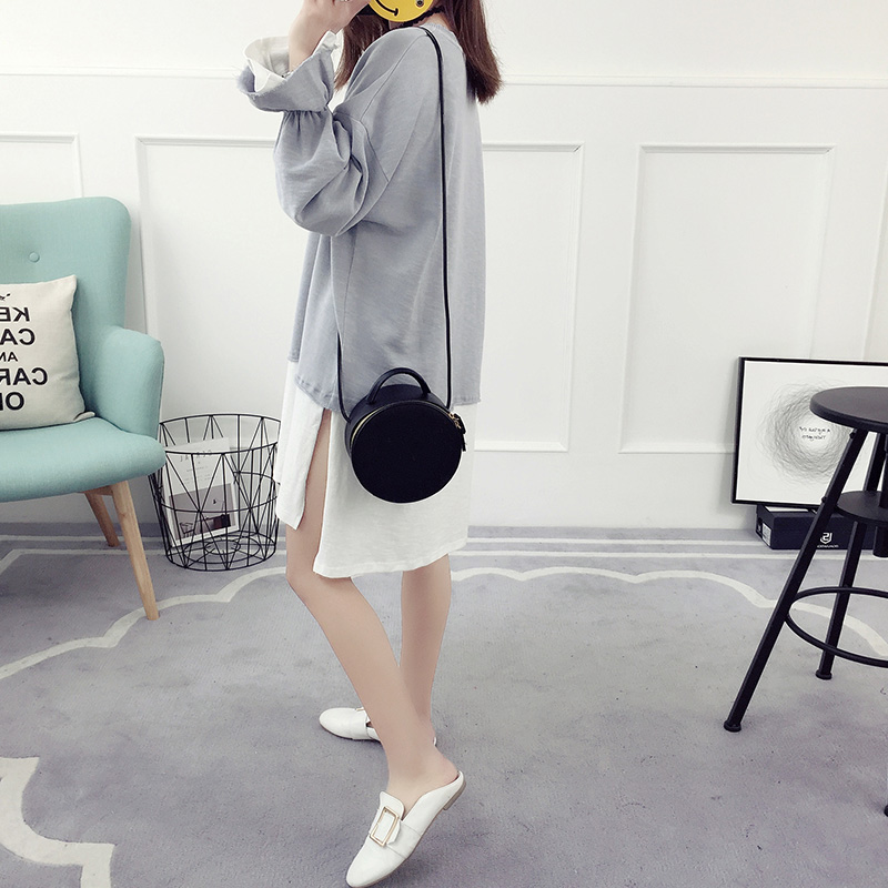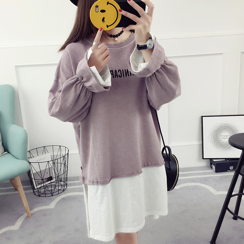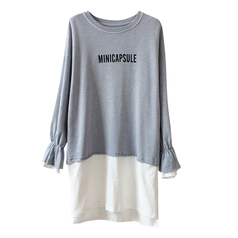 喇叭袖假兩件連衣裙女春秋新款韓版寬松顯瘦百搭春款打底衫夏