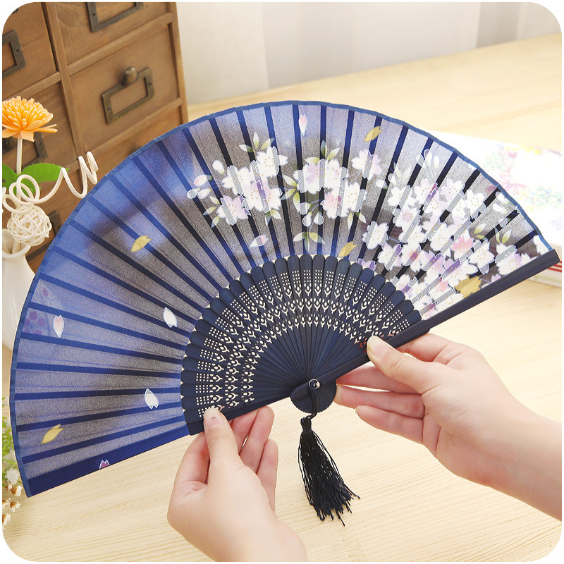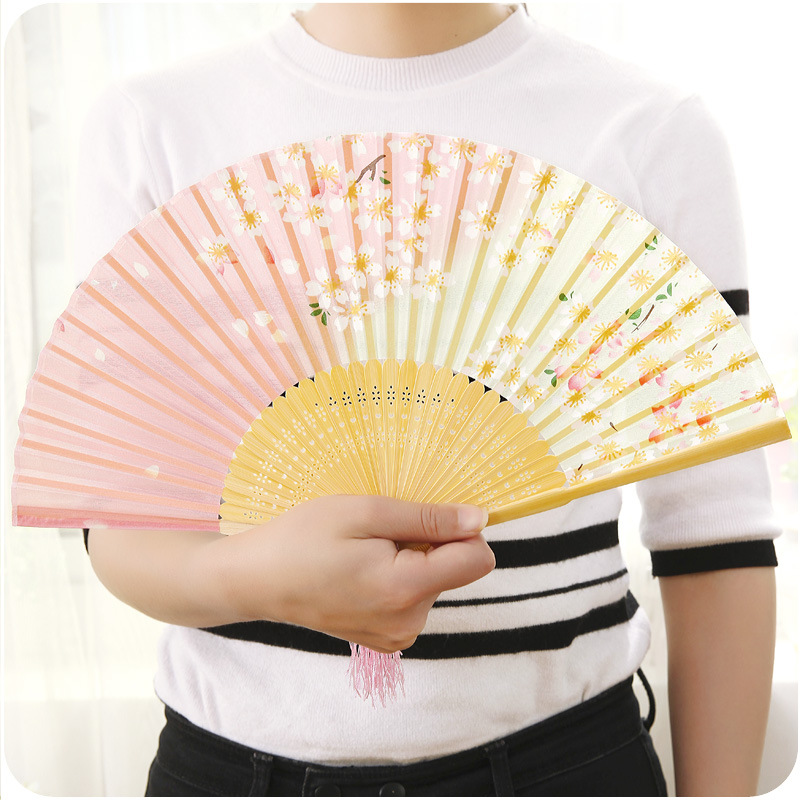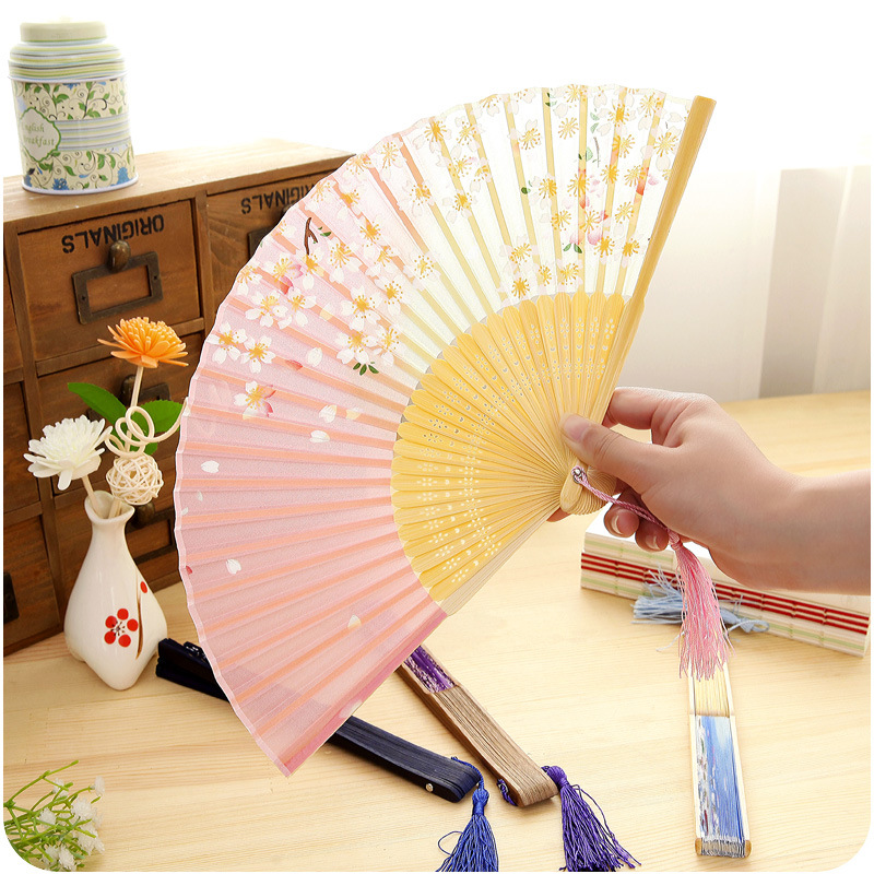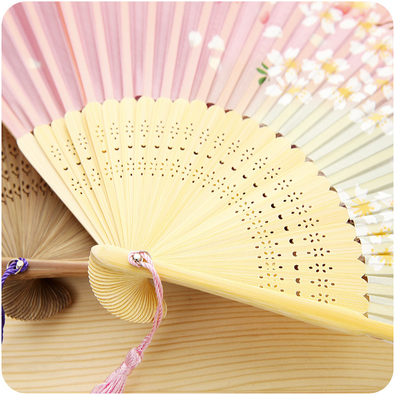 手工創意和風復古櫻花竹扇子夏季手搖帶穗子小扇古風真蠶絲折扇面