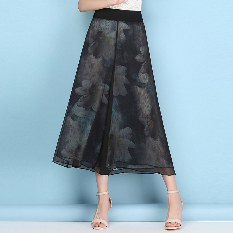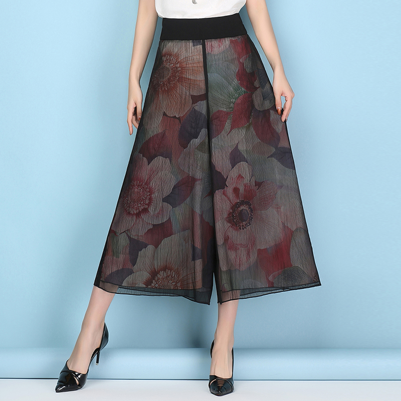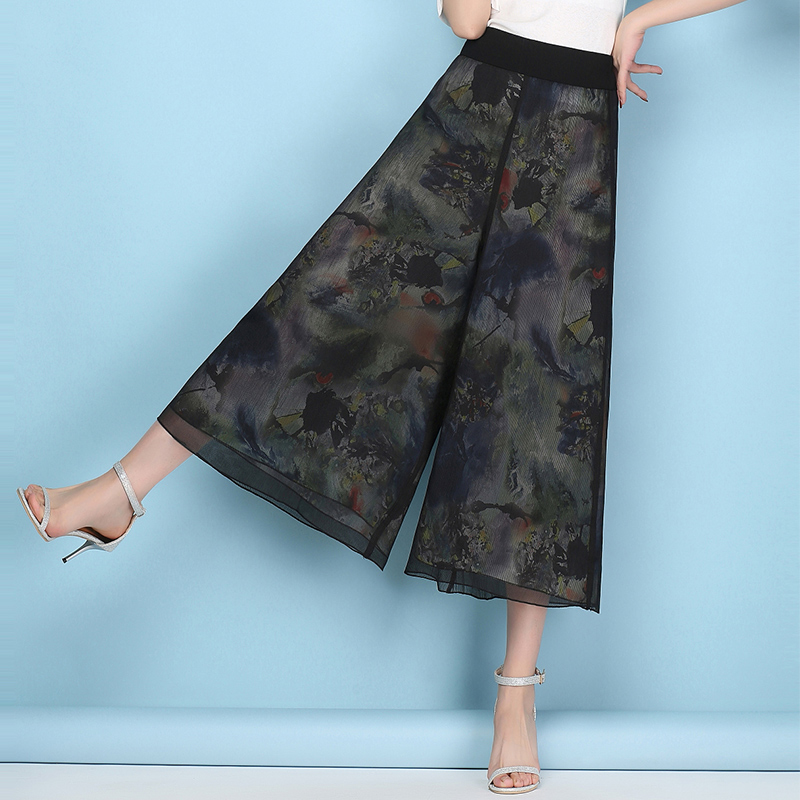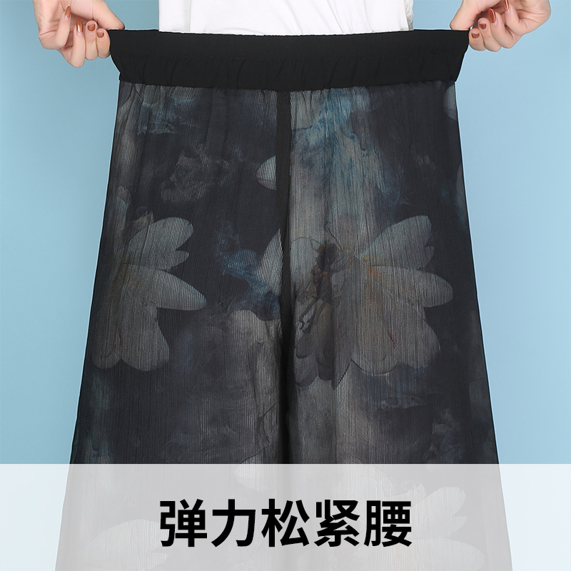 闊腿褲女九分褲春夏高腰寬松大碼休閑松緊雪紡寬腿褲裙大腳甩腿褲