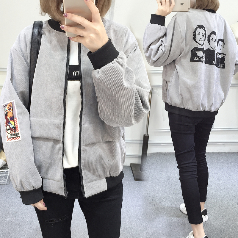 燈芯絨外套女春秋韓版bf原宿風寬松休閑百搭學生長袖夾克機車服潮