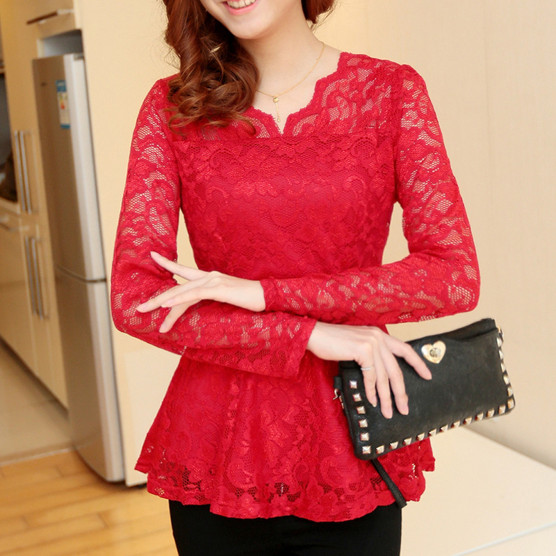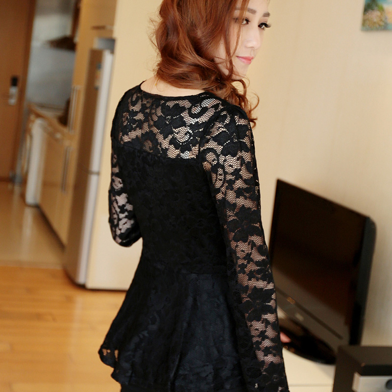 大碼顯瘦蕾絲衫女寬松春裝新款韓版中長款長袖打底衫女上衣小衫潮