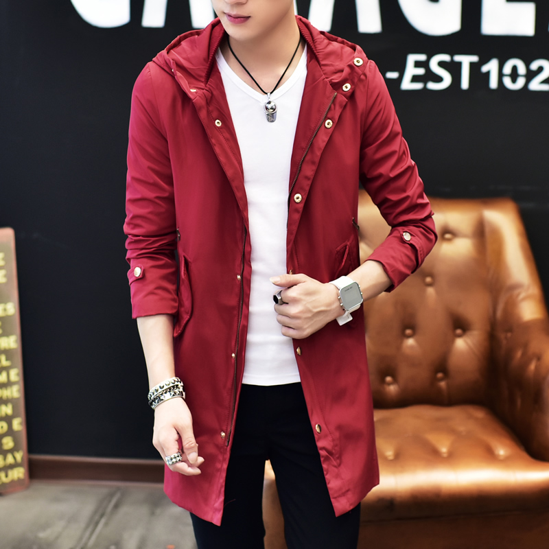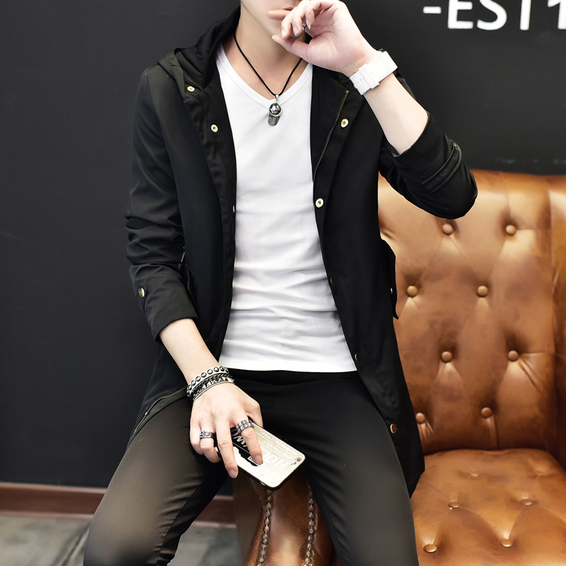 春秋季英倫連帽風衣男士中長款韓版修身外套大碼大衣潮男裝