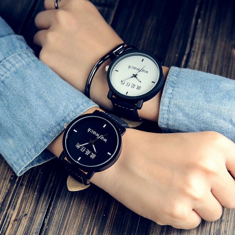 韓版情侶手表男學生復古簡約皮帶手表時尚潮流女休閑石英手表