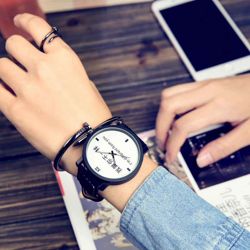 韓版Ingle情侶簡潔男女表情侶表皮帶手表女男士防水非機械學生表