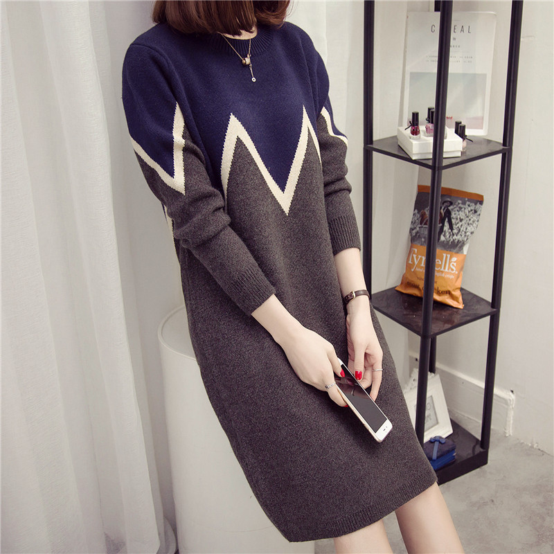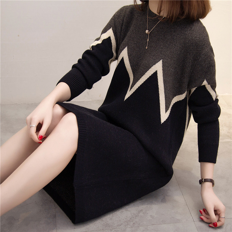 套頭毛衣女中長款秋冬加厚韓版寬松針織毛衣裙女裝冬裝新款潮