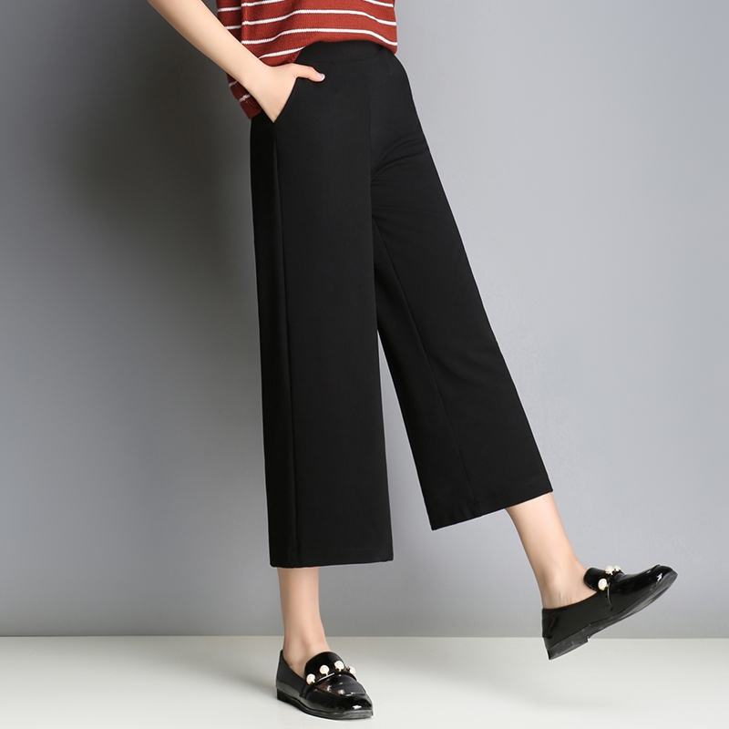 新款休閑直筒寬松薄款韓版學生高腰顯瘦雪紡夏季九分闊腿女褲