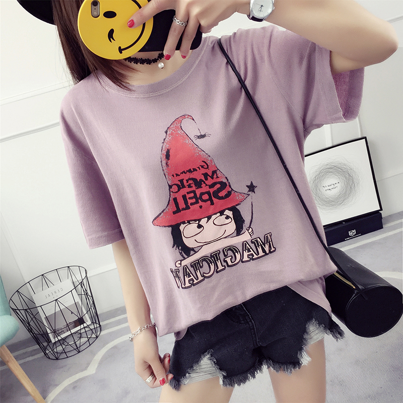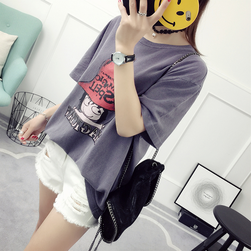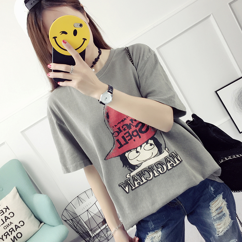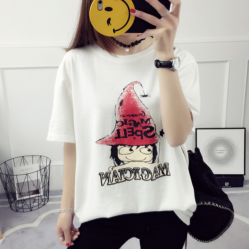 春裝新款韓版潮學生寬松百搭短袖T恤女裝上衣打底衫印花卡通